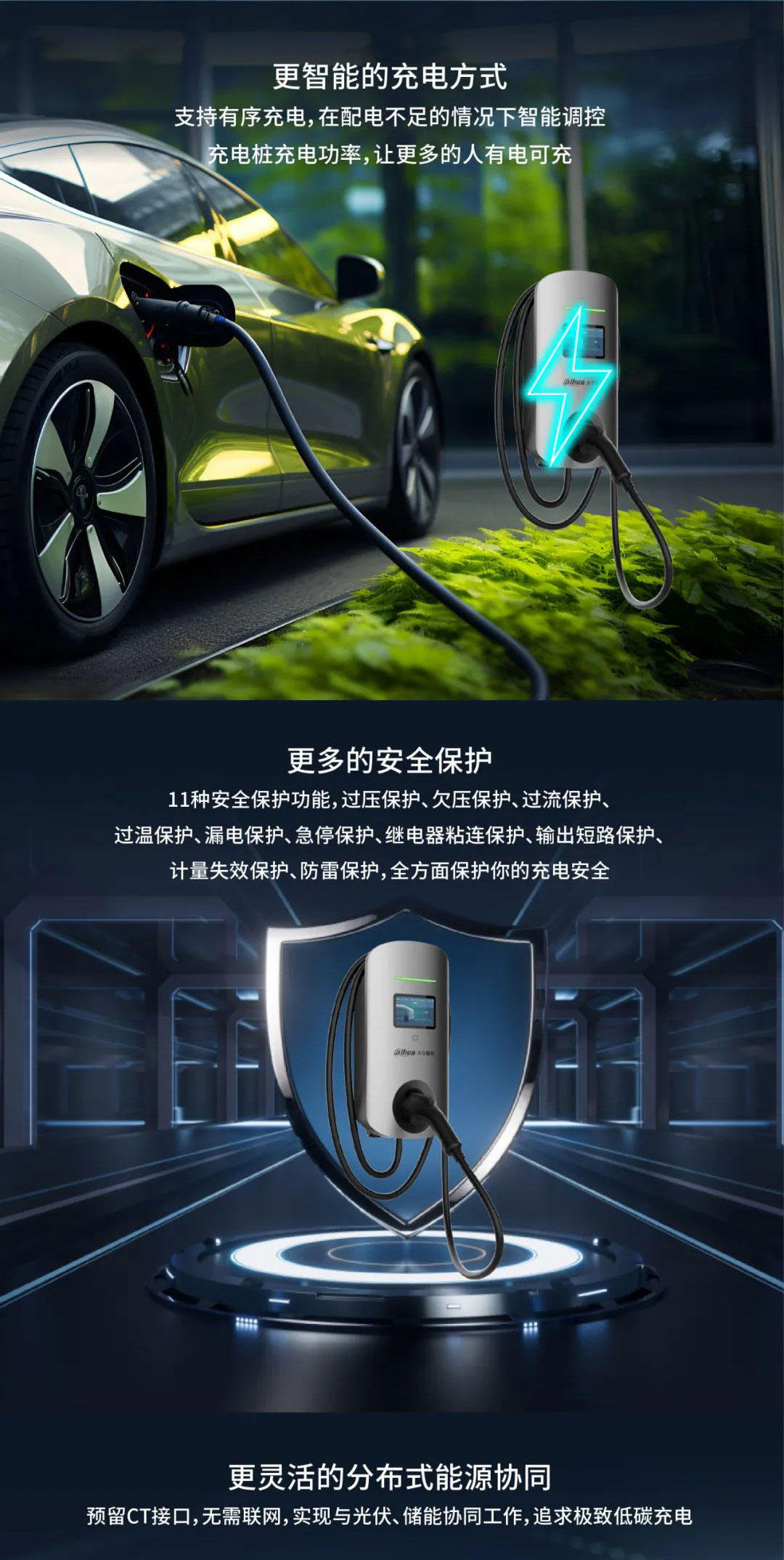 更智能的充電方式:支持有序充電,在配電不足的情況下智能調(diào)控充電樁充電功率,讓更多的人有電可充