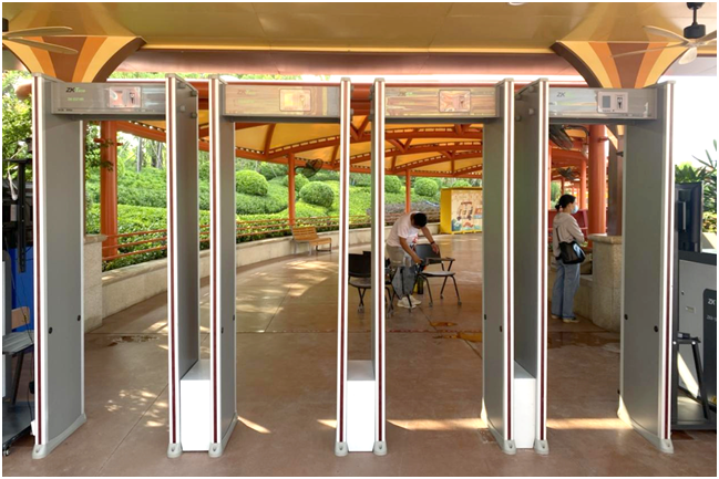 通過在景區(qū)入口配置金屬探測安檢門,可以有效的檢測出游客身上攜帶的金屬危險違禁品,當(dāng)游客從安檢門通過時,人身體上所攜帶的金屬超過根據(jù)重量、數(shù)量或形狀預(yù)先設(shè)定的參數(shù)值時,安檢門即刻報警,并顯示造成報警的金屬所在的區(qū)位,讓安檢員及時發(fā)現(xiàn)游客隨身攜帶的金屬物品。在保障游客安全的前提下,確保游客快速入園。