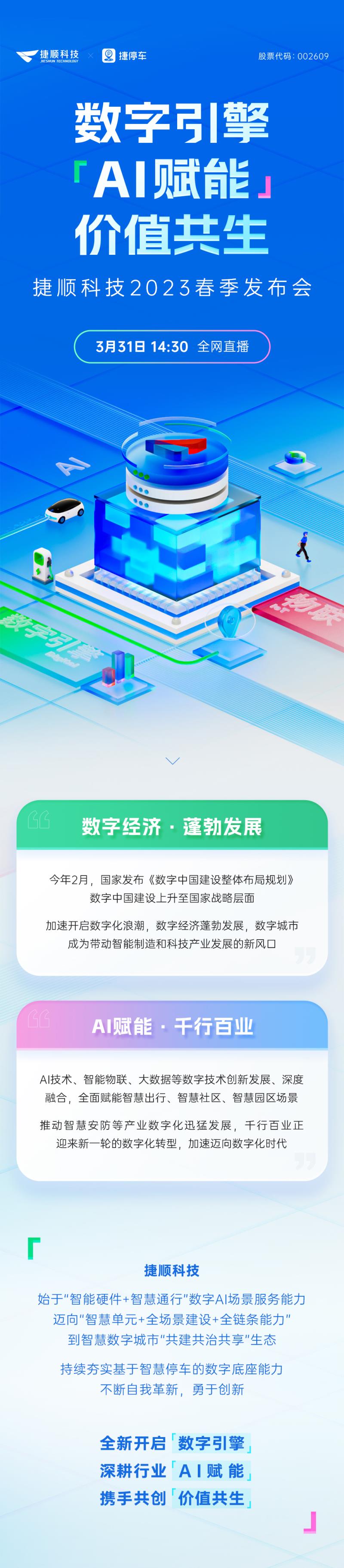 一鍵預(yù)約直播↓ 捷順科技2023年春季發(fā)布會(huì)——數(shù)字引擎 · AI 賦能 · 價(jià)值共生