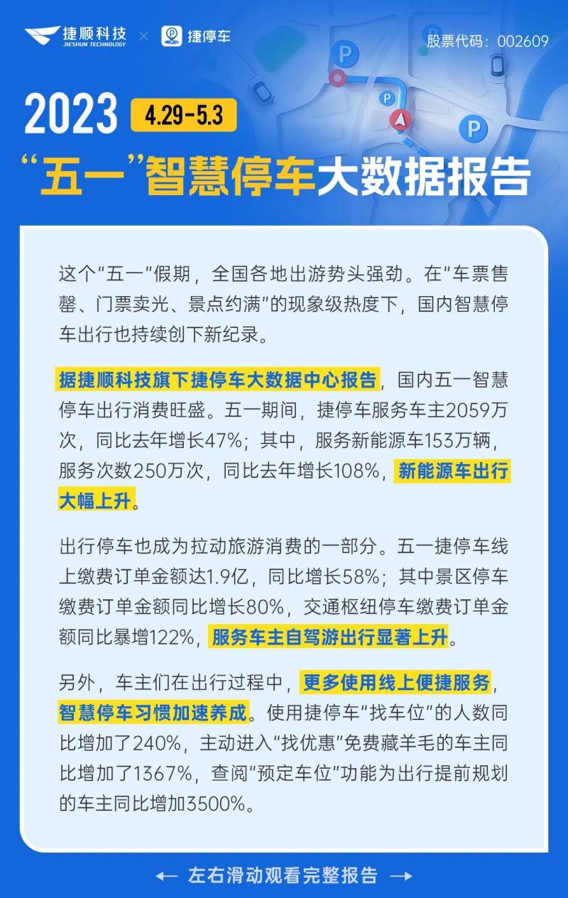 捷順科技2023“五一”智慧停車大數(shù)據(jù)報告