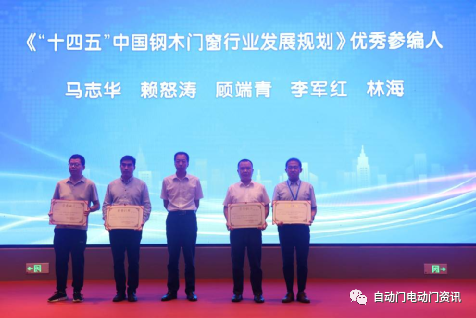 自動(dòng)門電動(dòng)門分會(huì)會(huì)長(zhǎng)兼鋼木門窗委員會(huì)主任林夕范為團(tuán)體標(biāo)準(zhǔn)《居住建筑用裝甲門》參編單位頒發(fā)了銅牌,分別為《“十四五”中國(guó)鋼木門窗行業(yè)發(fā)展規(guī)劃》突出貢獻(xiàn)單位、優(yōu)秀參編人頒發(fā)了證書。