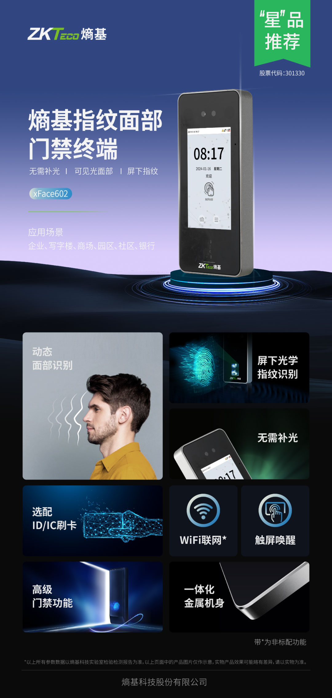 新品|熵基指紋面部門禁終端