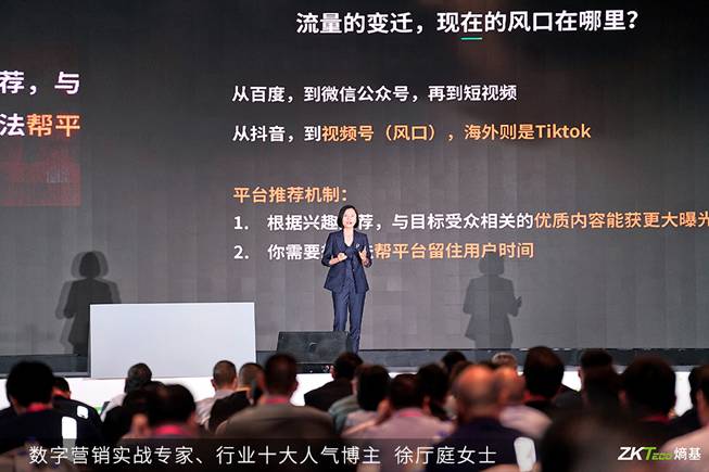 如今,短視頻和直播已然成為數(shù)字時(shí)代極為重要的信息傳播載體,短視頻在營(yíng)銷(xiāo)領(lǐng)域的影響力也日益凸顯。為順應(yīng)當(dāng)下新媒體營(yíng)銷(xiāo)發(fā)展的潮流,本次會(huì)議中,熵基科技還特別邀數(shù)字營(yíng)銷(xiāo)實(shí)戰(zhàn)專(zhuān)家、行業(yè)十大人氣博主徐廳庭女士分享新媒體發(fā)展新態(tài)勢(shì)和新走向,以及ToB企業(yè)短視頻營(yíng)銷(xiāo)策略與運(yùn)營(yíng)價(jià)值。