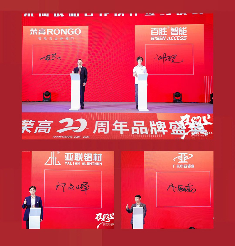 盛典開始,榮高董事長黃榮高為榮高在路上20周年盛典做開場致辭,在致辭中回顧了榮高從2004成立以來的發(fā)展歷程,向一路以來陪伴榮高的員工、合作伙伴、代理商對國家、各級政府、社會各界表達(dá)了誠摯的感謝,為榮高伸縮門的發(fā)展指明方向,重新布局品牌,打造年輕、創(chuàng)新、引領(lǐng)品牌。將巨資投入于研發(fā)創(chuàng)新,重新理榮高智能產(chǎn)品體系,實(shí)現(xiàn)懸浮門、平移門、直線門多維產(chǎn)品布局:立足當(dāng)今市場,實(shí)現(xiàn)流量、主流、高端產(chǎn)品梯度建設(shè),以滿足不同工程不同項(xiàng)目產(chǎn)品需求,改善結(jié)構(gòu)、外觀、工藝,打造智能安全高顏值伸縮門產(chǎn)品,致力能夠再次領(lǐng)跑伸縮門行業(yè)。
