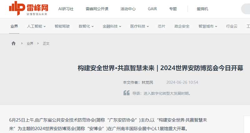 由廣東省公共安全技術(shù)防范協(xié)會主辦,以“構(gòu)建安全世界·共贏智慧未來”為主題的2024世界安防博覽會(以下簡稱安博會)于6月27日在廣州南豐國際會展中心圓滿落下帷幕。