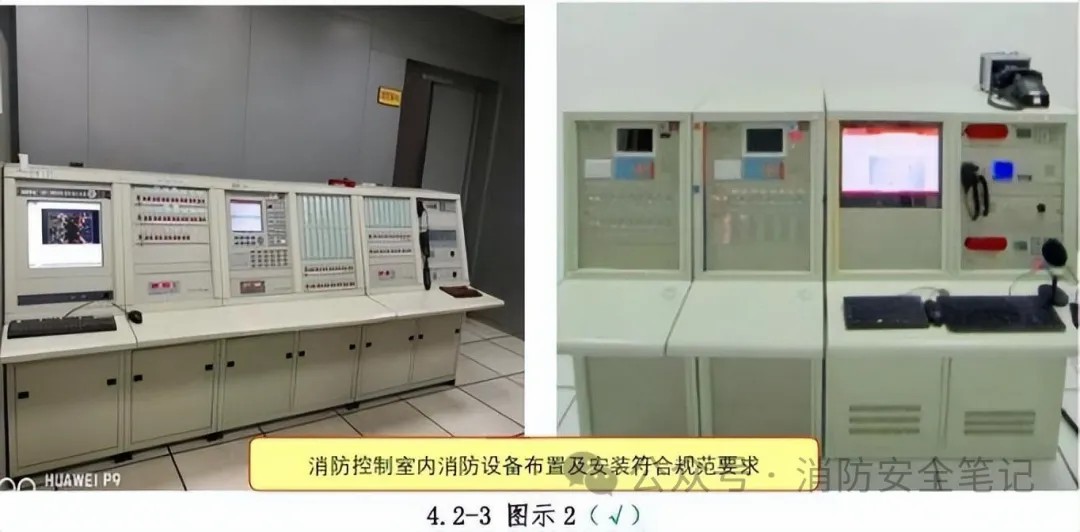 問題描述: 1)消防控制室內(nèi)消防設(shè)備布置擁擠、疊加,未有明顯間隔;[圖示1]2)設(shè)備安裝在輕質(zhì)墻上時未采取加固措施;3)設(shè)備底邊高出地(樓)面距離不足等。【圖示1】