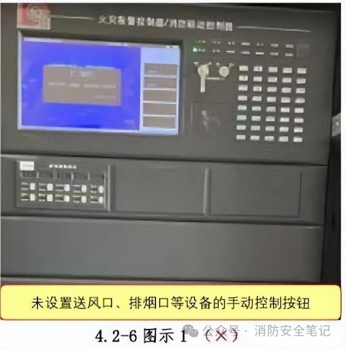 問題描述: 火災報警聯(lián)動控制器上未設(shè)置手動按鈕控制送風口、排煙口、排煙窗、排煙閥、電動擋煙垂壁的開啟或關(guān)閉?!緢D示1]