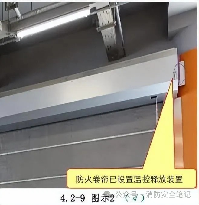 問題描述: 防火卷簾未按規(guī)范要求設(shè)置溫控釋放裝置。[圖示1]