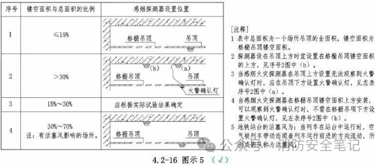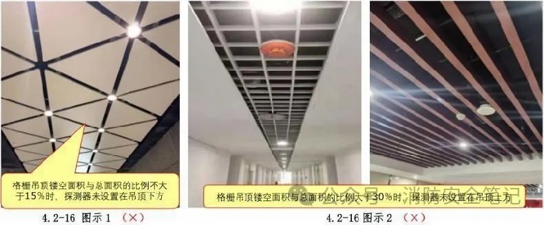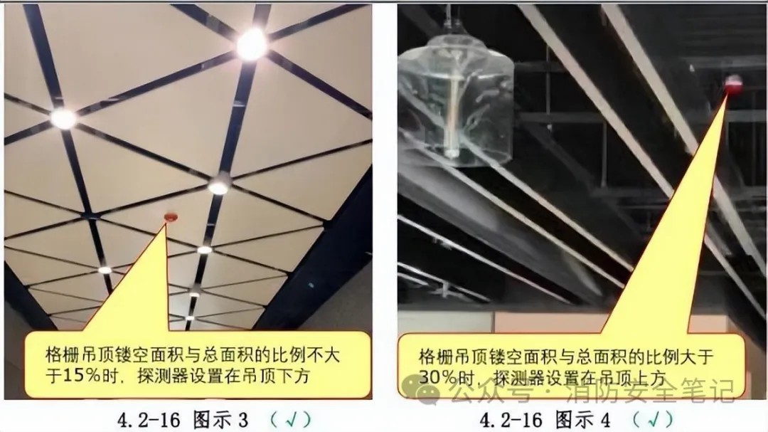 問題描述: 格柵吊頂處的感煙火災探測器沒有根據(jù)格柵鏤空面積與總面積的比例情況進行設(shè)置?!緢D示1][圖示2]。