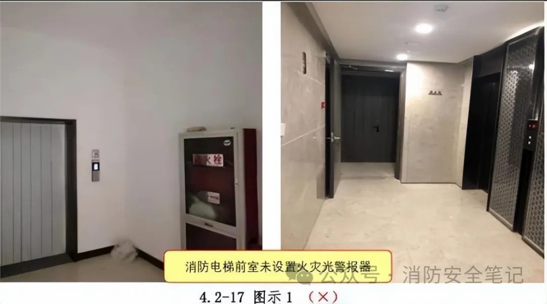 原因分析: 1)設(shè)計人員對規(guī)范不熟悉,忽視了消防電梯前室設(shè)置的重要性,導致設(shè)計疏漏;2)施工人員未按設(shè)計圖紙施工,漏裝。相關(guān)規(guī)范: ☆《火災自動報警系統(tǒng)設(shè)計規(guī)范》(GB 50116-2013)第6.5.1條。[圖示2]。正確做法: