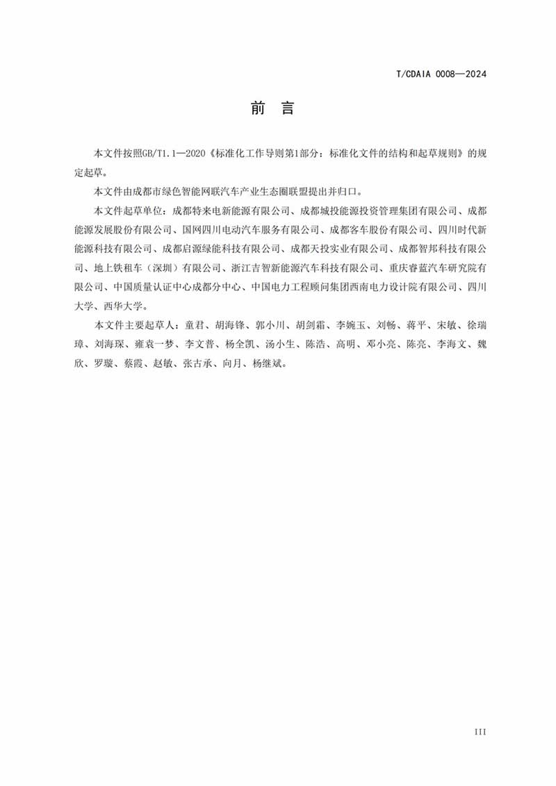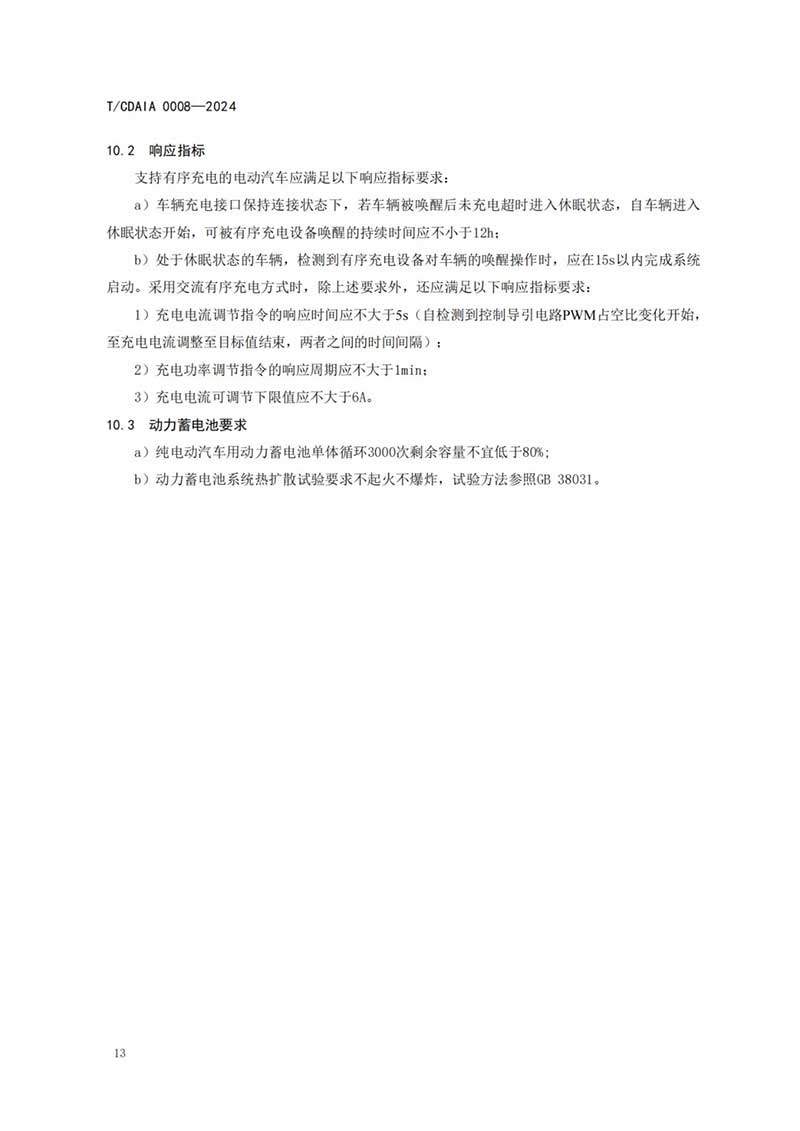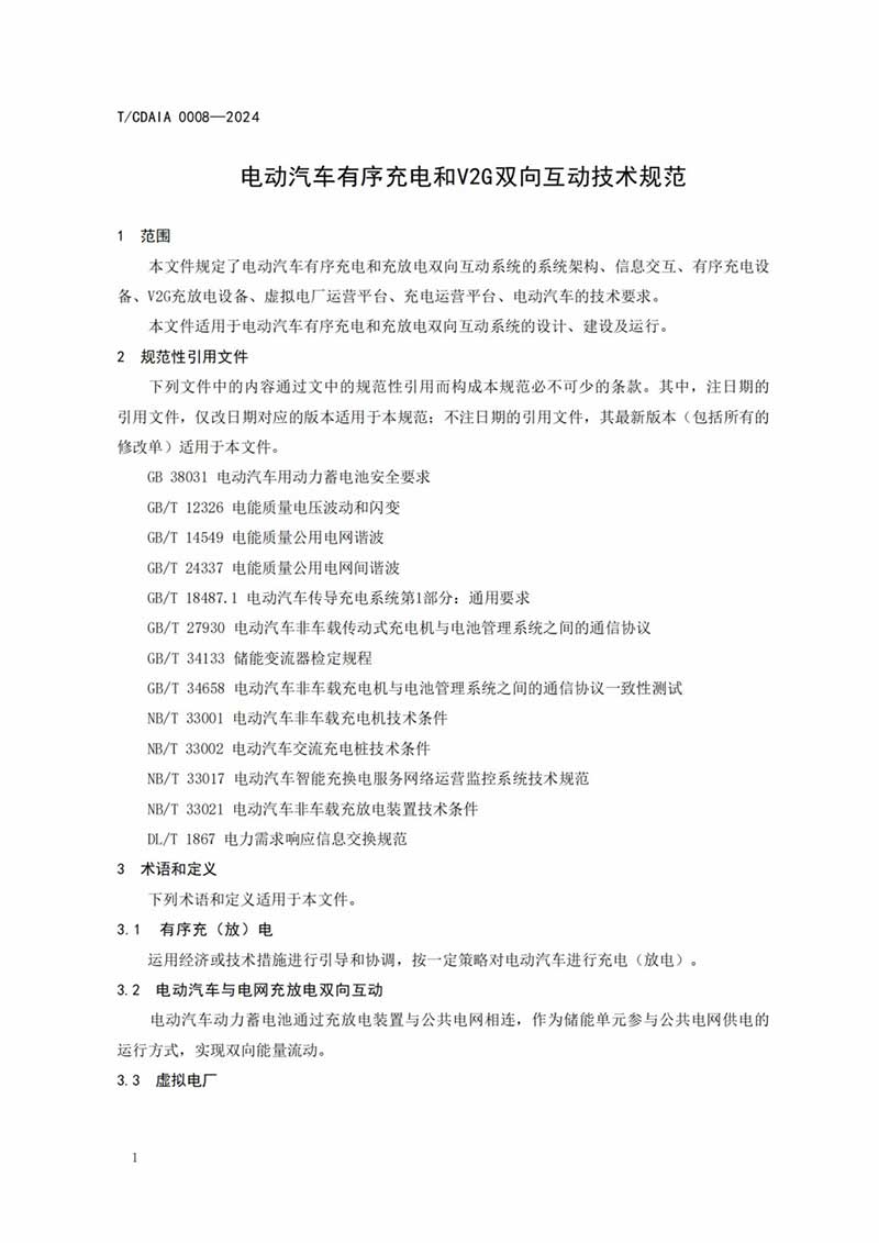 成都市綠色智能網(wǎng)聯(lián)汽車產(chǎn)業(yè)生態(tài)圈聯(lián)盟批準(zhǔn)發(fā)布《電動汽車有序充電和V2G雙向互動技術(shù)規(guī)范》(T/CDAIA 0008—2024)團(tuán)體標(biāo)準(zhǔn)(詳見附件),于2024年6月25日發(fā)布,2024年7月1日實(shí)施,現(xiàn)予以公告。