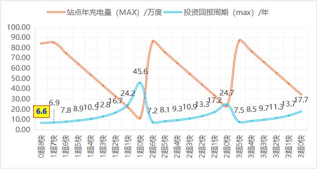 我們?cè)倏紤]一層,因?yàn)殡S著充電終端增加,設(shè)備成本和施工成本同步增加,那從投資回報(bào)周期來(lái)看,是怎么樣的結(jié)果呢?