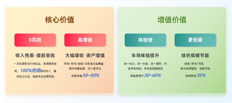 方案采用“兜底承包+增量分成”的合作模式。此模式不僅穩(wěn)固了客戶的基礎(chǔ)利潤,使其能夠獲得一次性承包金實(shí)現(xiàn)資源變現(xiàn),還通過多元化收入渠道、場景配套完善,助資產(chǎn)增值30~50%,并且長期可獲得增收分成收益,做到可持續(xù)發(fā)展。