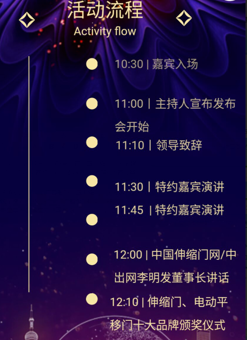 本次頒獎(jiǎng)盛典將頒發(fā)2017年用戶喜愛(ài)的中國(guó)伸縮門十大品牌、2017年伸縮門創(chuàng)新力品牌、2017年伸縮門成長(zhǎng)性品牌、2017年伸縮門十佳新銳品牌,以及2017年用戶喜愛(ài)的電動(dòng)平移門十大品牌。屆時(shí),佛山市自動(dòng)門行業(yè)協(xié)會(huì)執(zhí)行會(huì)長(zhǎng),佛山金鴻星智能科技有限公司董事長(zhǎng)金國(guó)建,中國(guó)伸縮門網(wǎng)、中出網(wǎng)董事長(zhǎng)李明發(fā)將在現(xiàn)場(chǎng)進(jìn)行主題演講,分享心得,干貨滿滿。