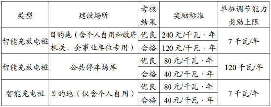 5月13日,上海市發(fā)展和改革委員會、上海市經(jīng)濟和信息化委員會、上海市財政局關(guān)于印發(fā)《上海市新型電力系統(tǒng)調(diào)節(jié)能力獎勵資金管理辦法》的通知。其中提到對智能充(放)電樁V2G,根據(jù)電網(wǎng)企業(yè)調(diào)節(jié)能力考核結(jié)果(考核規(guī)則另行發(fā)布)給予獎勵,獎勵期3年。個人自用非智能充電樁2024年底前完成智能充電樁替代的,可獲得智能充電樁獎勵;2025年及以后完成智能充電樁替代的,不再獎勵。具體標準詳見下表。