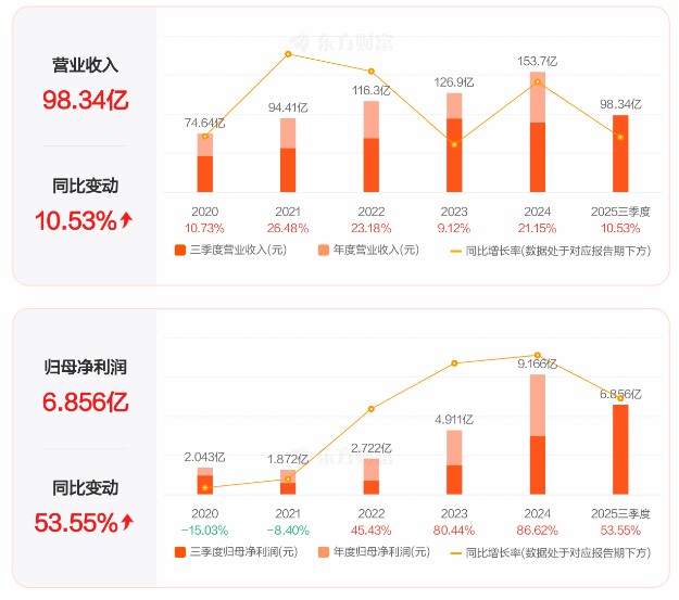 2025年前三季度公司實現(xiàn)營業(yè)總收入94.54億元,同比下降1.38%;歸母凈利潤9.01億元,同比增長0.75%