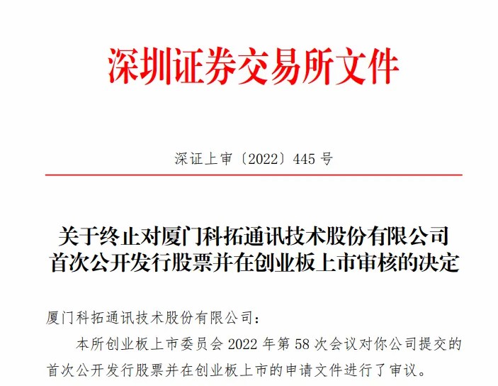 深交所終止對(duì)科拓股份上市審核中說(shuō)明,發(fā)行人部分業(yè)務(wù)原始單據(jù)不完整,固定資產(chǎn)折舊政策不謹(jǐn)慎,合同管理不規(guī)范。會(huì)議認(rèn)為,發(fā)行人不符合《創(chuàng)業(yè)板首次公開(kāi)發(fā)行股票注冊(cè)管理辦法(試行)》第十一條、《深圳證券交易所創(chuàng)業(yè)板股票發(fā)行上市審核規(guī)則》第十八條的規(guī)定。