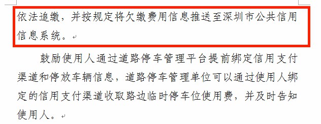 部分道路停車位被車輛長期占用卻不繳費,不僅擠占公共資源,也影響真正有臨時停車需求的市民。新規(guī)擬明確,在依法追繳欠費的同時,明確對經(jīng)催繳后仍然“欠費不繳”等違反管理規(guī)定車輛的有關(guān)處罰措施。比如新規(guī)要求欠費不交將欠繳費用信息推送至深圳市公共信用信息系統(tǒng)。