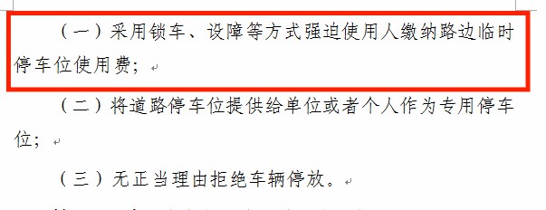 對于車位管理方管理亂象,進一步強調(diào)道路停車管理人員不得采用鎖車、設(shè)障等方式強迫使用人繳納路邊臨時停車位使用費;或無正當理由拒絕車輛停放。
