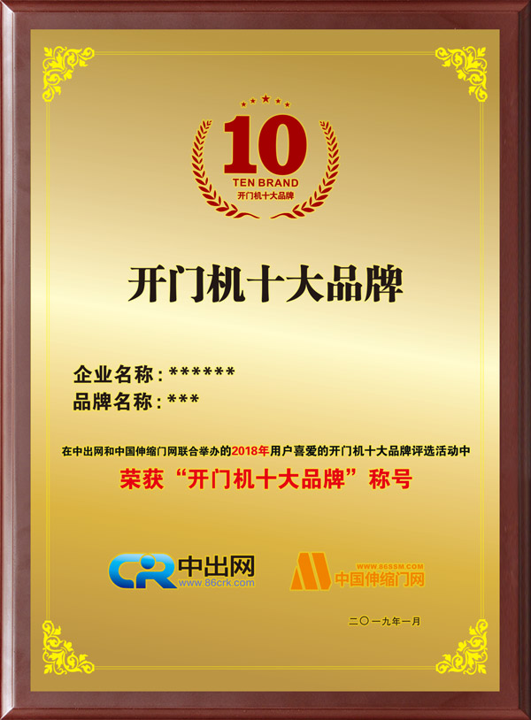 2018年度中國開門機(jī)十大品牌