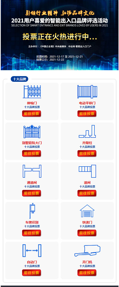 2021智能出入口品牌評(píng)選