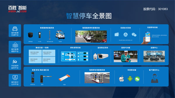 面對日益增長的城市級停車需求,百勝通過打造“硬件+平臺+運營”綜合能力,研發(fā)“路側、場內(nèi)停車一體化”解決方案,完備的“地磁+pos機、高位相機+地位視頻樁、智慧車位鎖及整套的無人值守停車管理設備”,打造城市級智慧停車平臺,提供城市級停車運營服務。百勝將繼續(xù)有效推進城市級智慧停車項目的建設工作,提升項目質量與價值,與合作伙伴一起共同創(chuàng)造一個更智慧的城市與更美好的未來。