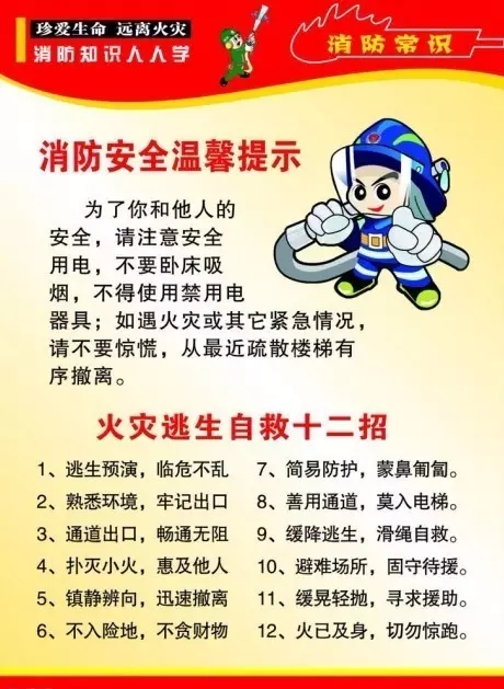 第12訣:火已及身,切勿驚跑。(請(qǐng)記住:就地打滾雖狼狽,烈火焚身可免除)