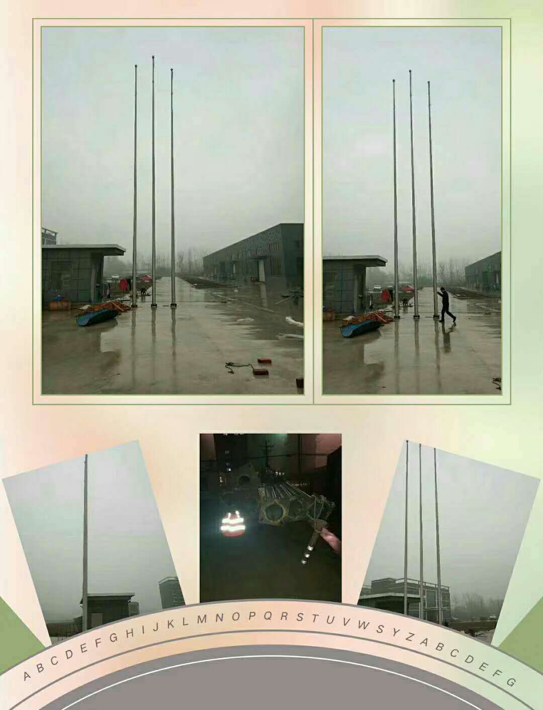 本公司是一家集研發(fā)、設(shè)計、生產(chǎn)、銷售及服務(wù)于一體的大型旗桿專業(yè)生產(chǎn)企業(yè)。銷售網(wǎng)絡(luò)遍布全國及世界各地。其主要產(chǎn)品包括不銹鋼旗桿、風(fēng)動旗桿、電動旗桿、水平旗桿、奏國歌旗桿、軍旗旗桿、道路旗桿等一系列產(chǎn)品。公司質(zhì)量方針:精心設(shè)計求完美,精確制造保質(zhì)量,精誠服務(wù)贏信譽。為了打造高品質(zhì)的產(chǎn)品,我們擁有專業(yè)的技術(shù)人才,并從國外引進先進的高科技生產(chǎn)設(shè)備。以滿足更多客戶對產(chǎn)品的需要。