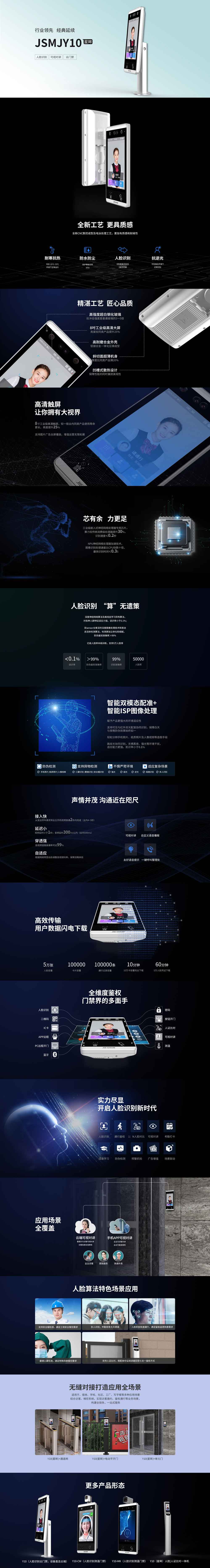 JSMJY10(星眸)是一款定位于中?端商業(yè)樓宇、園區(qū)、社區(qū)人臉識別?禁產(chǎn)品,在?淋、?溫、極寒環(huán)境皆可運?,深度融合訪客、考勤、消費、測溫等多種解決?案,機身采用超薄設(shè)計,精致富含科技感。產(chǎn)品采用工業(yè)級嵌入式神經(jīng)網(wǎng)絡(luò)處理芯片,搭載全?研深度?臉識別算法,?適應(yīng)逆光、強光、側(cè)光等各種光照環(huán)境變化,并具有?臉識別、刷卡、?維碼、藍(lán)?、?機APP、密碼等多種開??式。