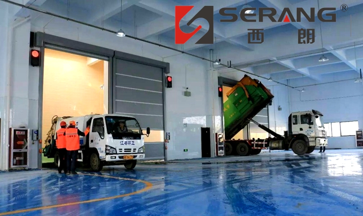 2、電軸式指卷在軸承上的快速升降門,類似的有快速卷簾門、大型快速堆積門、硬質(zhì)快速門,適合垃圾中轉(zhuǎn)站、餐廚垃圾站、環(huán)衛(wèi)垃圾站處理中心等,這些速度比較快,速度大于1.0m/s;每天開關(guān)頻次也高,可達(dá)600-800次,滿足車輛來(lái)回運(yùn)送垃圾的要求。