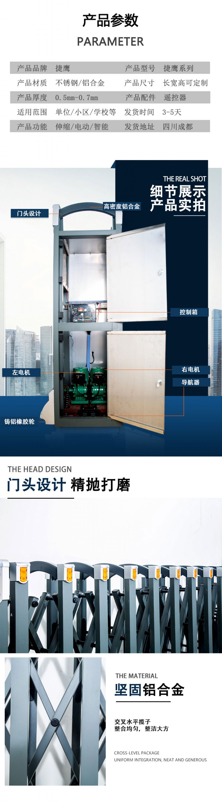 產(chǎn)品名稱:不銹鋼伸縮門