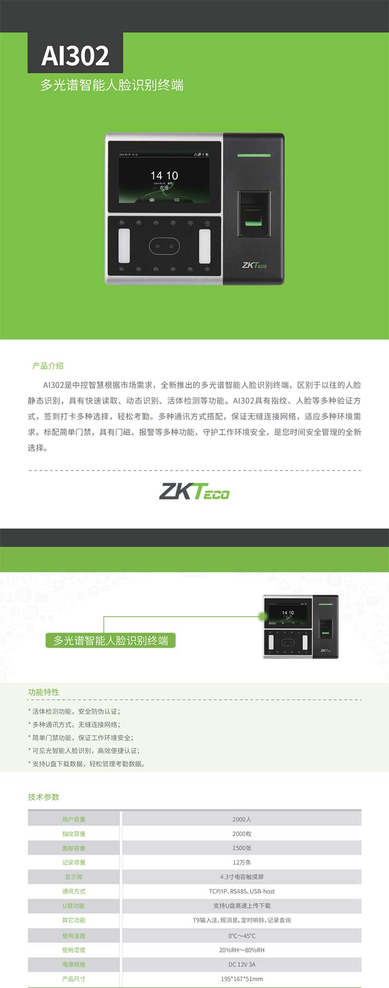 產(chǎn)品名稱:多光譜智能人臉識別終端AI302