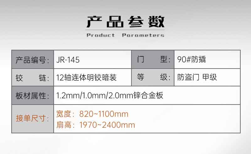 溫馨提醒:選購入戶門JR-145產品,請仔細瀏覽本頁面。如您還有疑問,請撥打服務電話,我們將免費為您提供入戶門JR-145的款式、價格、生產廠家、安裝維修等方面的咨詢服務。