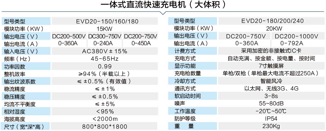 一體式直流充電產(chǎn)品是一種將充電柜功能、充電樁、配電系統(tǒng)等全部集成在一起的智能化快速充電機(jī)。具有人機(jī)交互,刷卡,計(jì)費(fèi),監(jiān)控,通信等主要功能。