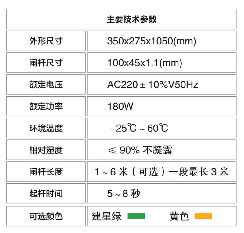 9.閘桿升降平穩(wěn),可靠、升降時(shí)間為2-6秒。