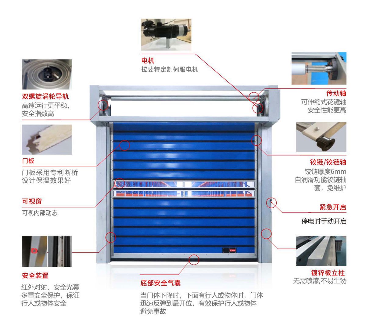 抗風快速門——集快速、節(jié)能、密封、高效、抗風、環(huán)保于一身的新型金屬工業(yè)門,擁有很高的可靠性和實用性,其運行速度是工業(yè)滑升門的6倍以上,憑借極高的工作效率,更高的安全性,硬質(zhì)快速門正在逐漸替代工業(yè)滑升門。