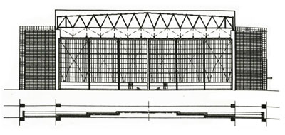推拉式飛機(jī)庫(kù)門大門采用下承重,上導(dǎo)向結(jié)構(gòu),大門開啟后多扇重疊在門洞兩側(cè)。大門門扇采用型鋼骨架,面板采用寶鋼產(chǎn)壓型彩板、無(wú)氟環(huán)保型聚氨酯發(fā)泡板、聚碳酸酯陽(yáng)光板三種板型供用戶選擇。開門機(jī)采用機(jī)電一體化裝置,采用PLC變頻控制。行程限位采用光電感應(yīng)無(wú)接觸限位。在開門過(guò)程中有聲光報(bào)警警示。紅外探測(cè)遇阻即停功能。如遇停電可轉(zhuǎn)換到手動(dòng)開啟狀態(tài)。主要適用于飛機(jī)機(jī)庫(kù)、大型船廠及大型工業(yè)車間。