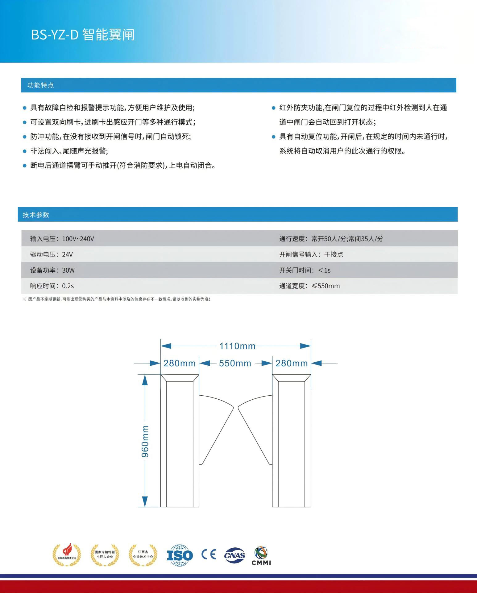 ● 斷電后通道擺臂可手動推開(符合消防要求),上電自動閉合;