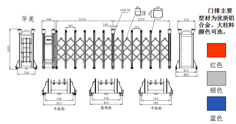 南北德信華美-Y鋁合金伸縮門門體采用公司自行加工優(yōu)質(zhì)不銹鋼和鋁型材等材料制作,主框架采用立體四維平行原理鉸接,伸縮靈活。伸縮門主要由門體、驅(qū)動器、控制系統(tǒng)構(gòu)成。驅(qū)動器采用特種電機(jī)驅(qū)動,蝸輪蝸桿減速,并設(shè)有手動離合器,停電時可手動啟閉,控制系統(tǒng)有臺控及遙控兩種??膳鋫錆L動顯示屏,顯示個性文字內(nèi)容。還可選配備智能紅外線探頭防碰撞裝置,運(yùn)行時遇人或異物20-30CM可自動返回運(yùn)行,從而保障車輛及行人的安全。適用于工礦企業(yè)、機(jī)關(guān)院校、娛樂場所、賓館飯店等庭院圍墻門。起到美化環(huán)境、改善企業(yè)面貌、提升企業(yè)形象;有助于營造文明社會、文明企業(yè)、文明城市氣氛;