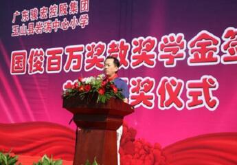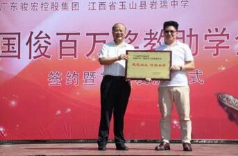 日前,廣東駿宏控股集團(tuán)(下簡(jiǎn)稱為駿宏集團(tuán))董事長(zhǎng)楊國(guó)俊先生為母校巖瑞中學(xué)和巖瑞中心小學(xué)設(shè)立“國(guó)俊百萬(wàn)獎(jiǎng)教助學(xué)金”,善款總額為200萬(wàn)元,巖瑞中學(xué)、巖瑞中心小學(xué)各100萬(wàn)元。