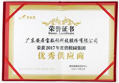 安居寶再次榮獲“2017年度碧桂園集團(tuán)優(yōu)秀供應(yīng)商”。這項(xiàng)殊榮離不開安居寶十年如一日的專注與專業(yè),充分體現(xiàn)了碧桂園集團(tuán)對安居寶的肯定以及對未來合作市場的信心。至此,安居寶與碧桂園集團(tuán)建立全面深入,互利共贏的戰(zhàn)略合作關(guān)系已達(dá)10余年。此外,公司近兩年推出的新產(chǎn)品“安居小寶”智能家居也受到了碧桂園的高度認(rèn)可,目前為止,“安居小寶”智能家居已在碧桂園旗下300余個樓盤推廣使用。