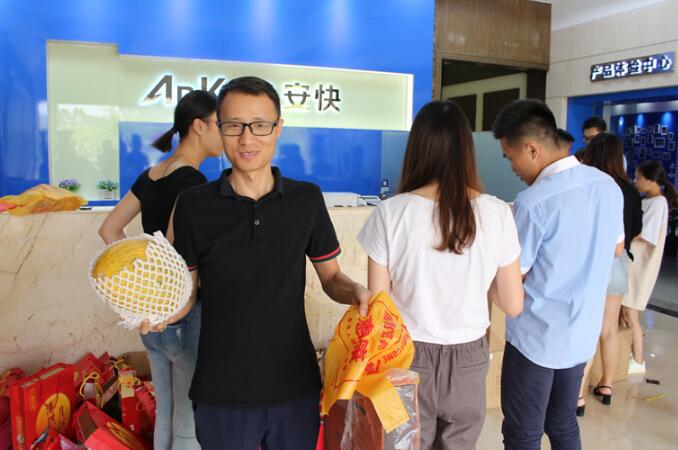 2018中秋佳節(jié)來臨之際,為了使全體員工感受到“大家庭”的溫暖。9月21日安快人力資源部代表公司向全體員工發(fā)放月餅與水果,并致以節(jié)日的問候和衷心的祝福!