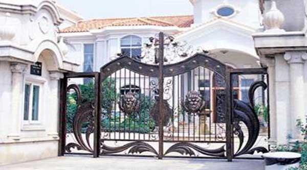 白山出安智能鐵藝大門的主要做法為以尺寸較大的方管做大門的框架,然后使用鐵藝配件直接在框架中拼接鑲嵌。這種通透型的鐵藝大門的性能更加傾向于美觀,而且材料使用量比較少,適合做尺寸比較大的門,比如小區(qū)大門,別墅花園門等。