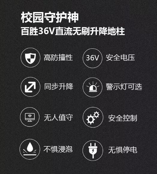 百勝36V直流無刷升降地柱,憑借36V安全電壓+直流無刷電機(jī)的動(dòng)力組合,由內(nèi)而外的獨(dú)特魅力,短時(shí)間內(nèi)便深受恩寵,C位出道,風(fēng)靡校園市場。