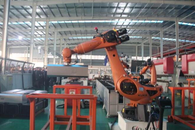 嘉賓重點(diǎn)參觀了“鈑金柔性生產(chǎn)線”、“智能加工中心”、“機(jī)器人焊接工作站“等智能化生產(chǎn)線,欣賞機(jī)器人協(xié)作完成的折彎、堆垛、焊接等一系列動(dòng)作。