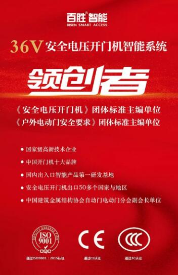 “安全電壓電動門、開門機雙主編”的殊榮,對百勝而言,是榮譽,更是責任!