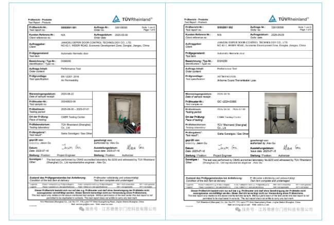 2025年7月,德普爾自動門更是再獲國際權(quán)威認證,在TüV萊茵實驗室交出了“滿分答卷”:
