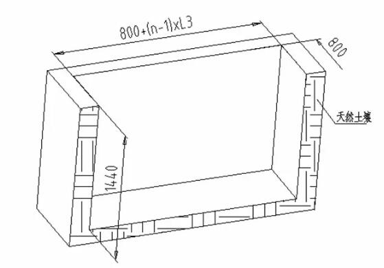寬度800mm、深度為地基盒深度+400mm、長(zhǎng)度為:800+(n-1)x L3,其中n為需要安裝地柱數(shù)量,L3為地柱間距。