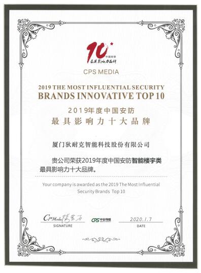 2010年至2020年,狄耐克與“中國安防最具影響力品牌”獎項(xiàng)已有十年的同行之情,一路見證了安防行業(yè)強(qiáng)大的生長力。在這份行業(yè)權(quán)威品牌評選榜單中,狄耐克樓宇對講、智能家居兩大產(chǎn)業(yè)雙雙登榜,行業(yè)賦予了狄耐克快速發(fā)展的動力。