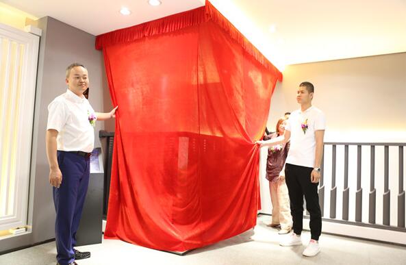 ▲黃總與經(jīng)銷商家人共同揭幕衛(wèi)朗鋁藝新品“恒元”